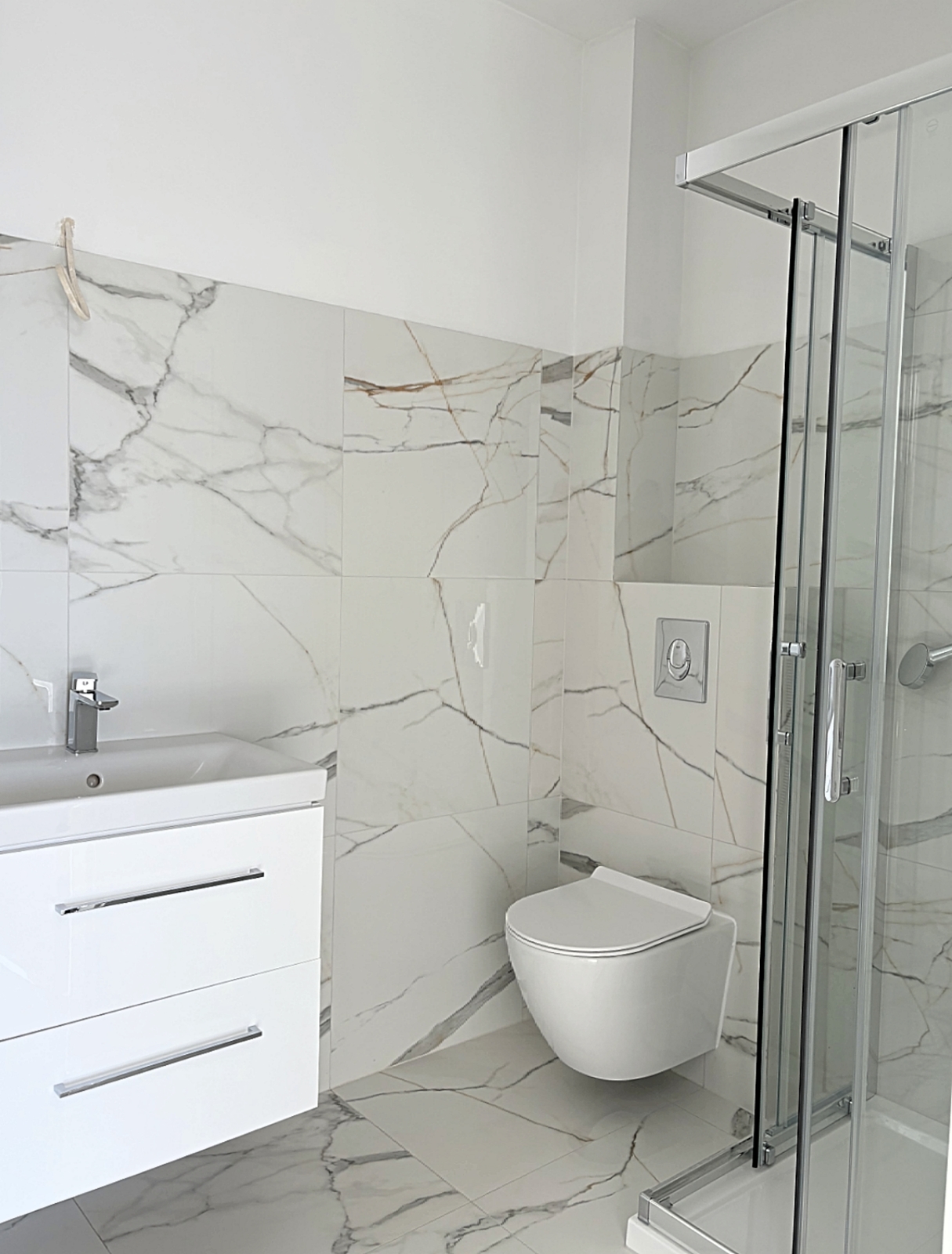 | Wyposażenie łazienek: | WC, Prysznic, Umywalka |