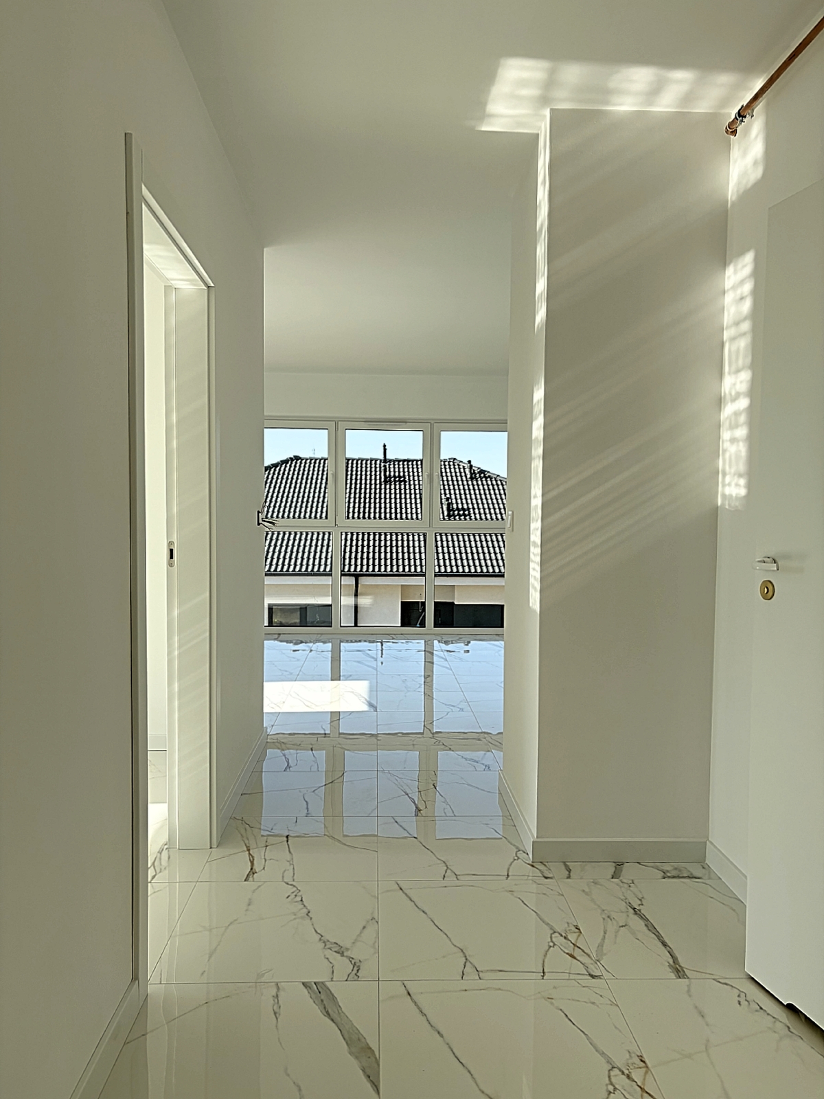 Mieszkanie jest bardzo jasne i przestronne, a do wykończenia wnętrz użyto dobrych gatunkowo materiałów.