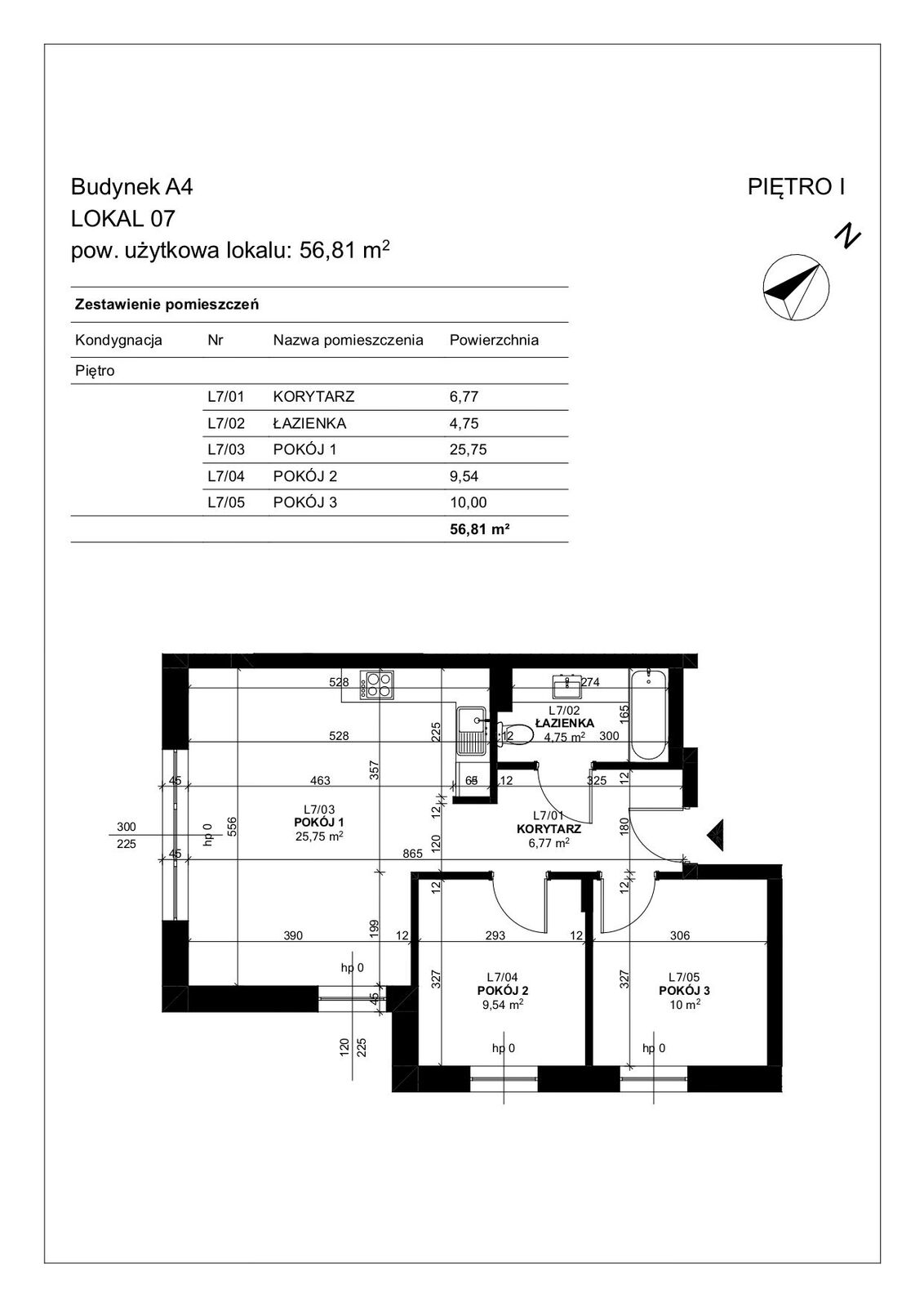 | Powierzchnie pokoi: | 25,75 + 10,00 + 9,54 |