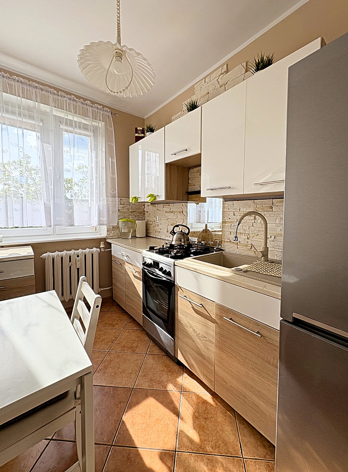 Mieszkanie prezentuje się bardzo dobrze, jest czyste, zadbane i sprawne technicznie. Dzięki układowi na dwie strony lokal zapewnia doskonałe, naturalne oświetlenie oraz lepszą cyrkulację powietrza. Mieszkanie rozkładowe daje również większe możliwości aranżacyjne.