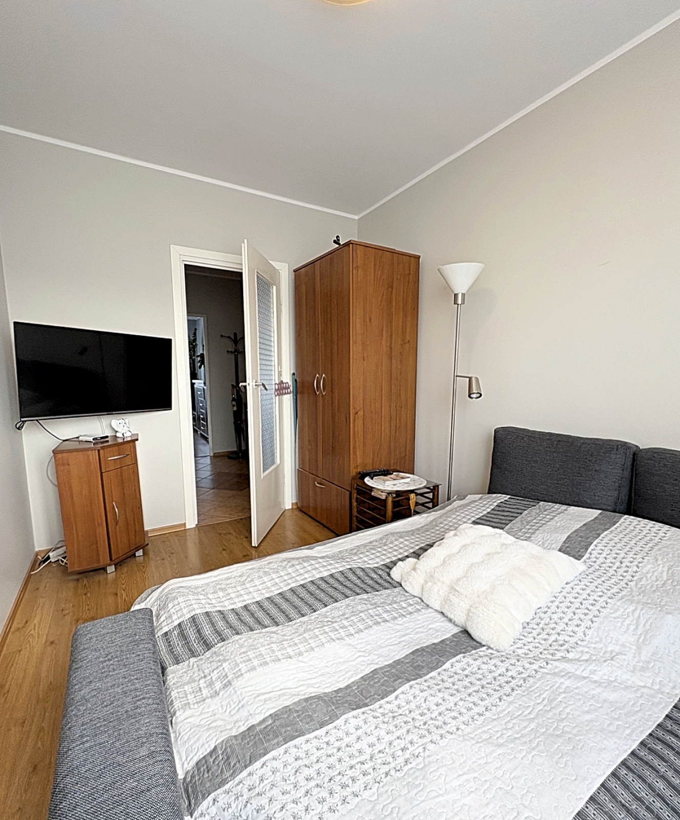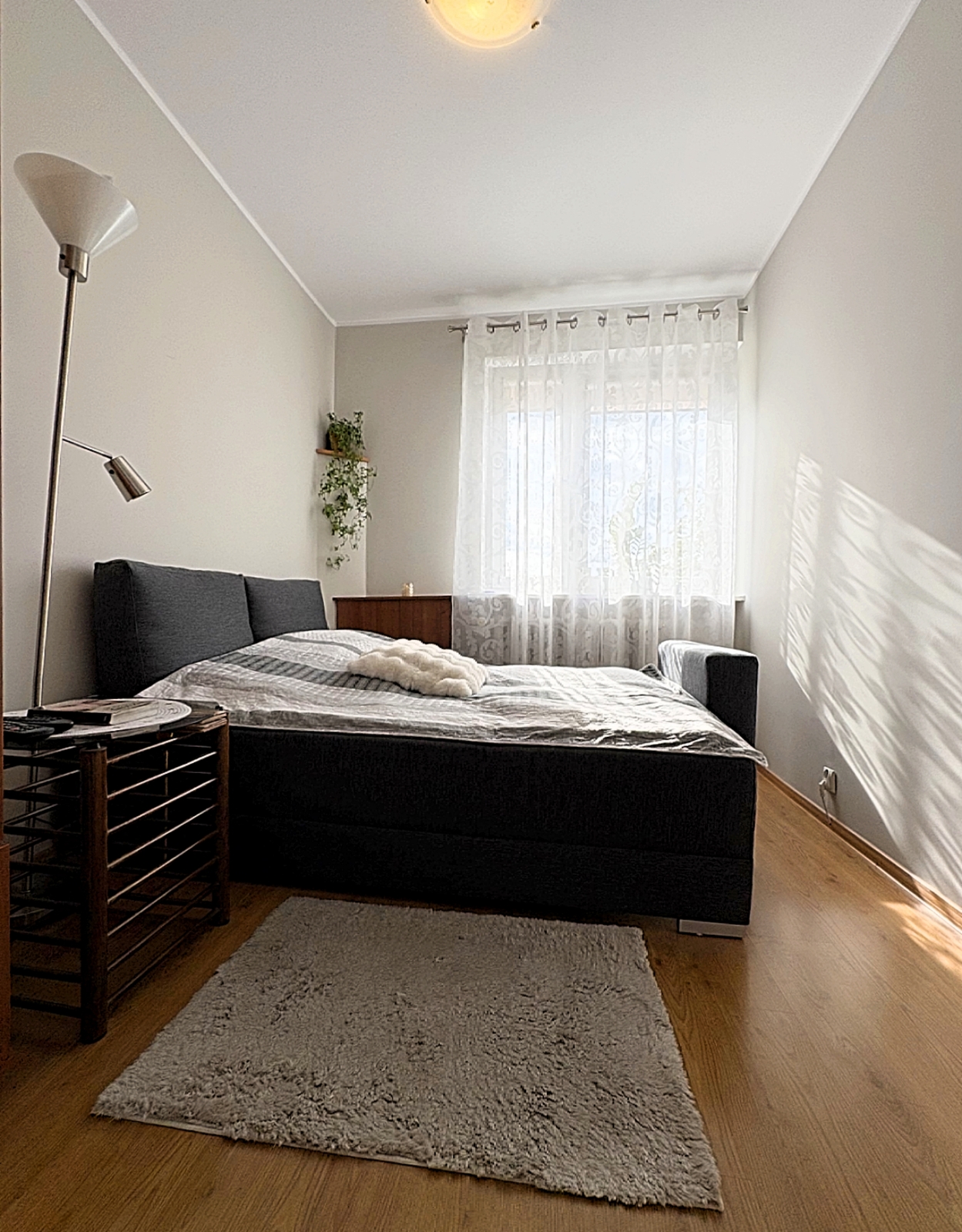 Na sprzedaż obszerne i jasne, 2-pokojowe mieszkanie, o łącznej powierzchni użytkowej 49,9 m2, zlokalizowane w niskim bloku na os. Bolesława Chrobrego, na poznańskim Piątkowie. Przedmiotowe mieszkanie znajduje się na 4-tym , ostatnim piętrze budynku, z pięknym widokiem na otaczającą wokół zieleń. Lokal składa się z bardzo dużego salonu (22,3 m2) , sypialni (9 m2), umeblowanej i wyposażonej kuchni (6,6 m2), łazienki z wanną (3,4m2), osobnego wc (0,9 m2) oraz przedpokoju z dużą szafą garderobianą (7,4 m2). Jest też naprawdę spora loggia (5,58 m2) oraz przynależna piwnica (ok 3,5 m2).