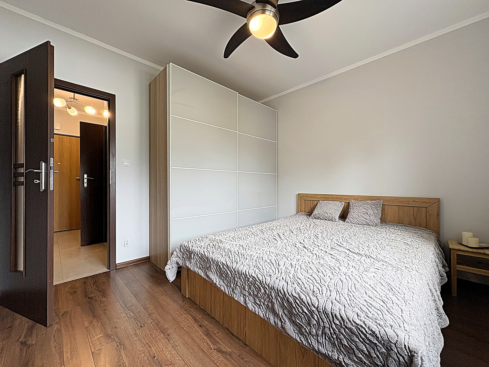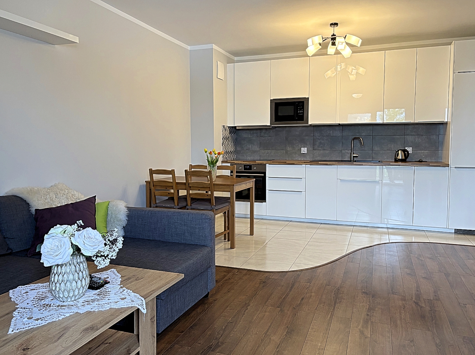 Polecam do wynajęcia, 2-pokojowe mieszkanie, zlokalizowane w nowoczesnym budynku, przy ul. Hawelańskiej, na poznańskich Winogradach. Mieszkanie o łącznej powierzchni użytkowej 46,28 m2, znajduje się na 2-gim piętrze w 6-piętrowym budynku z windą. Lokal składa się z obszernego salonu z wydzieloną częścią kuchenną i jadalnianą, sypialni, łazienki i przedpokoju. Jest również spory balkon z przyjemnym widokiem na pobliskie tereny. Mieszkanie jest całkowicie umeblowane i wyposażone we wszystkie najpotrzebniejsze urządzenia (pralko-suszarka, zmywarka, lodówka, zamrażarka, piekarnik, mikrofalówka, płyta grzewcza, telewizor, elektryczne wentylatory sufitowe). Mieszkanie jest jasne, ustawne i posiada bardzo wygodny układ pomieszczeń. Mieszkanie jest w bardzo dobrym stanie technicznym i jest świeżo po malowaniu