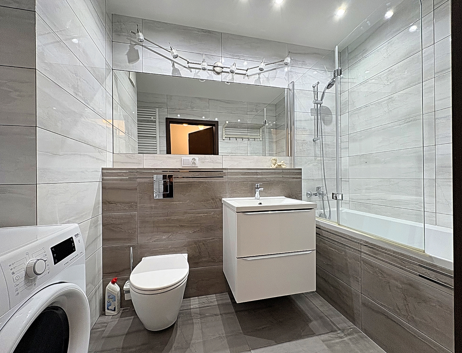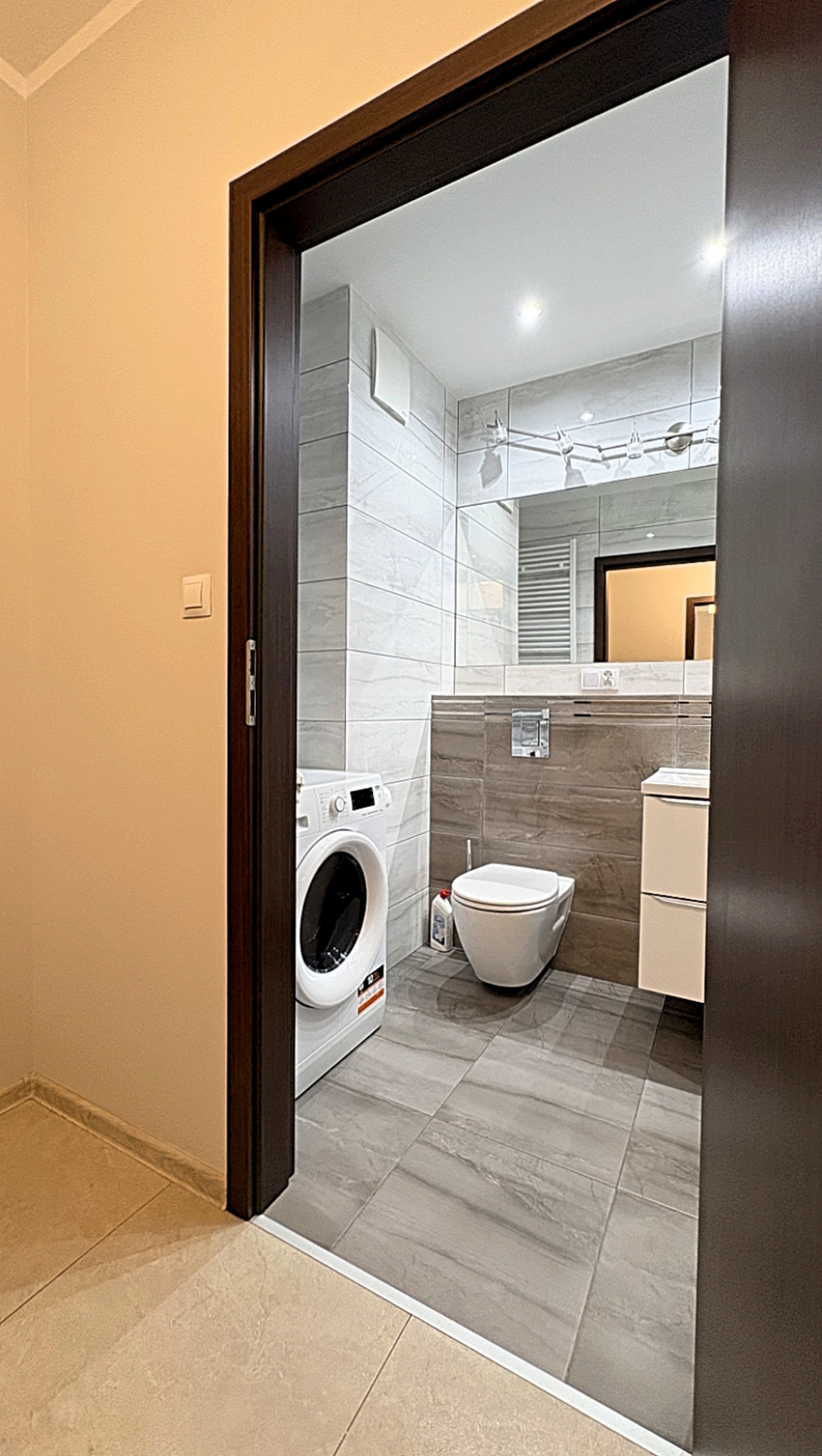 | Wyposażenie łazienek: | WC, Grzejnik drabinkowy, Wanna, Umywalka, Pralka |
