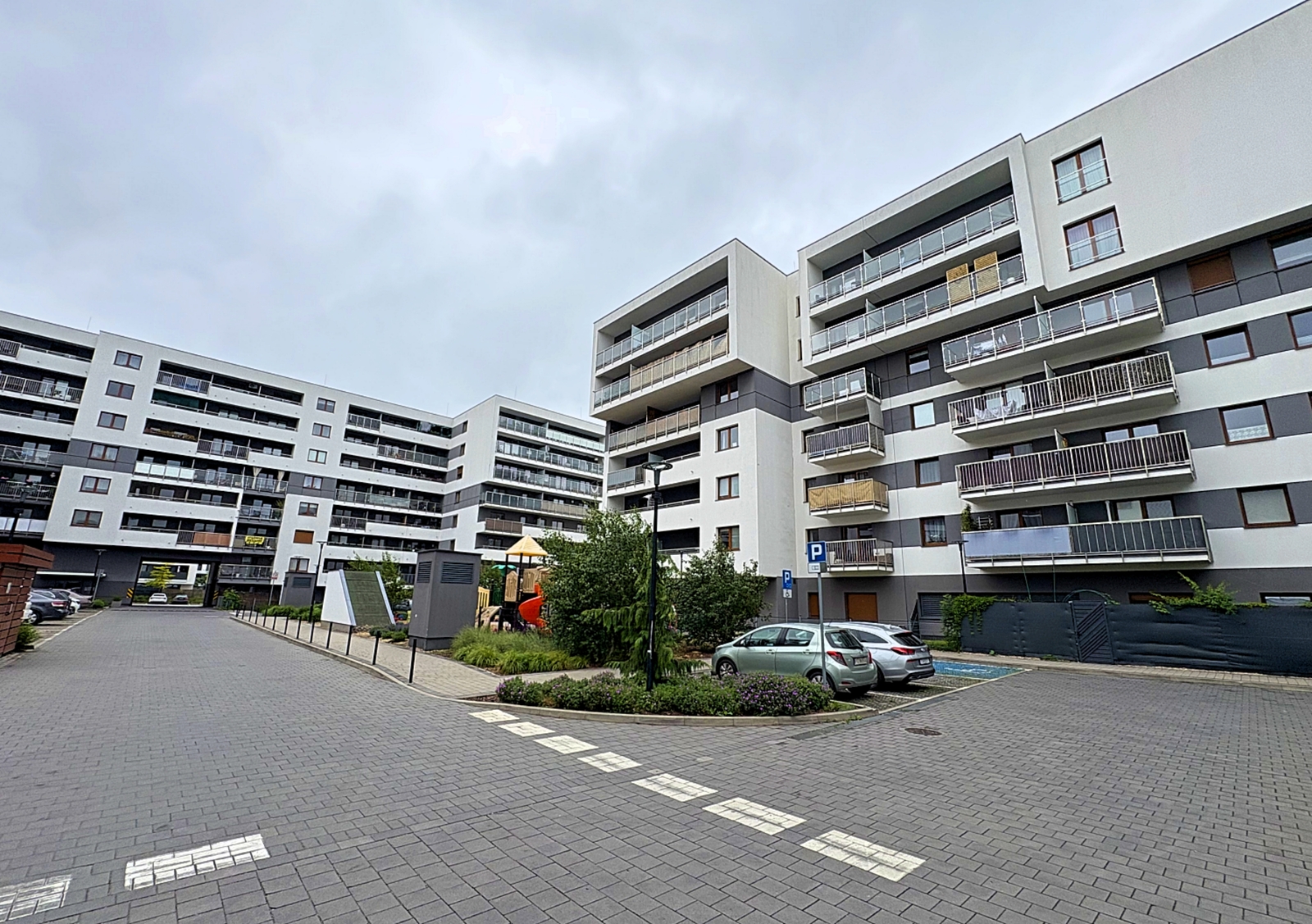 Budynek, w którym znajduje się opisywany lokal znajduje się na kameralnym, zamkniętym osiedlu, w doskonałej, bezpiecznej lokalizacji, w pobliżu terenów zielonych, sklepów, punktów usługowych, z dobrą komunikacją (w bliskim sąsiedztwie znajdują się przystanki tramwajowe i autobusowe)