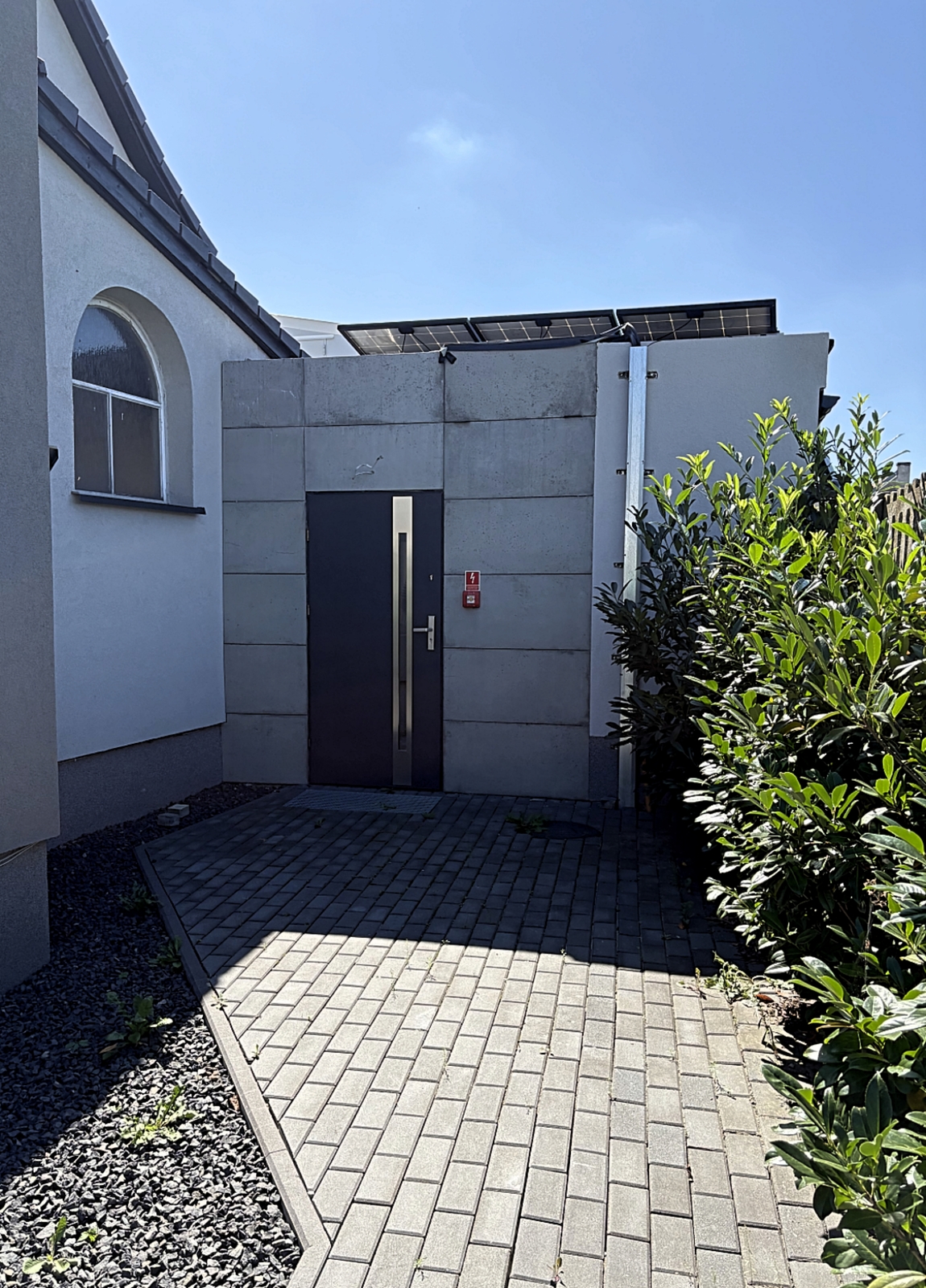 Magazyn: Powierzchnia: 53,55 m2 - jedno, duże pomieszczenie w kształcie prostokąta o bokach 9,78 m x 5,47 m. Brama wjazdowa o wymiarach 300 x 250 oraz niezależnie drzwi. Pełna automatyka bramy, nagrzewnica, prąd, doświetlenie w dachu, posadzka betonowa. Plac manewrowy na terenie posesji