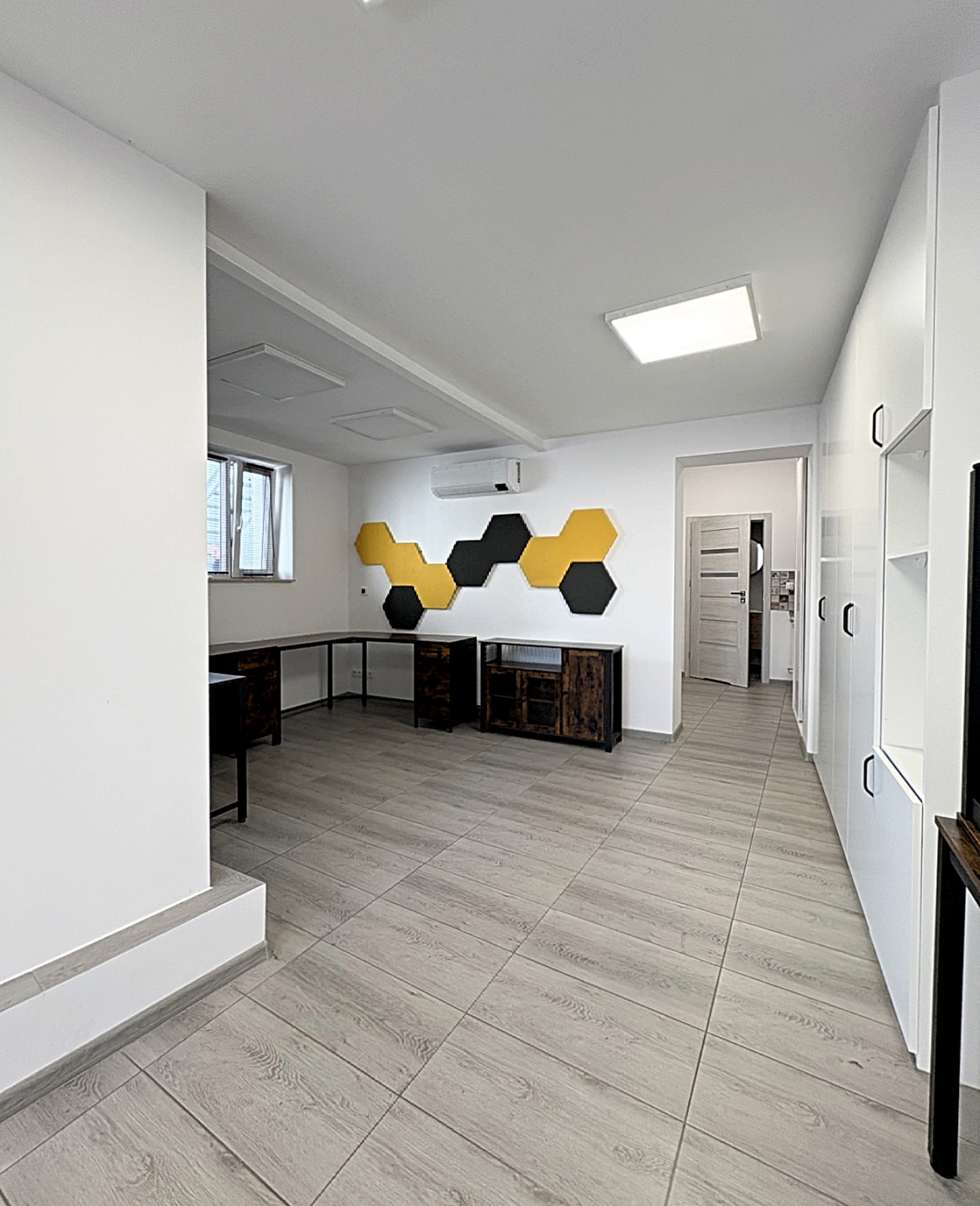 Lokal biurowy-usługowy: Powierzchnia 42,71 - składa się z 2 pomieszczeń (16,17 m2 i 15,45 m2), zaplecza socjalno-kuchennego (7,06 m2) oraz łazienki z wc (4,03 m2). Lokal jest wykończony, ściany pomalowane, na podłodze płytki, część socjalno-kuchenna jest umeblowana i wyposażona. Własne ogrzewanie - piec gazowy. W lokalu jest zainstalowany klimatyzator. 2 niezależne wejścia do lokalu (od strony ulicy oraz wejście od strony magazynów)