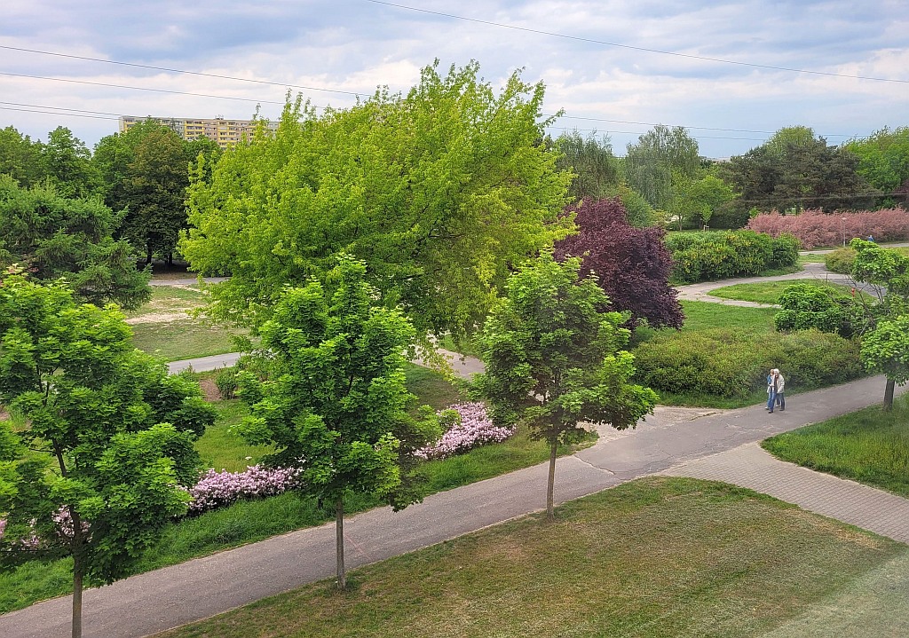 Mieszkanie z balkonem wychodzącym na wewnętrzny, zielony dziedziniec