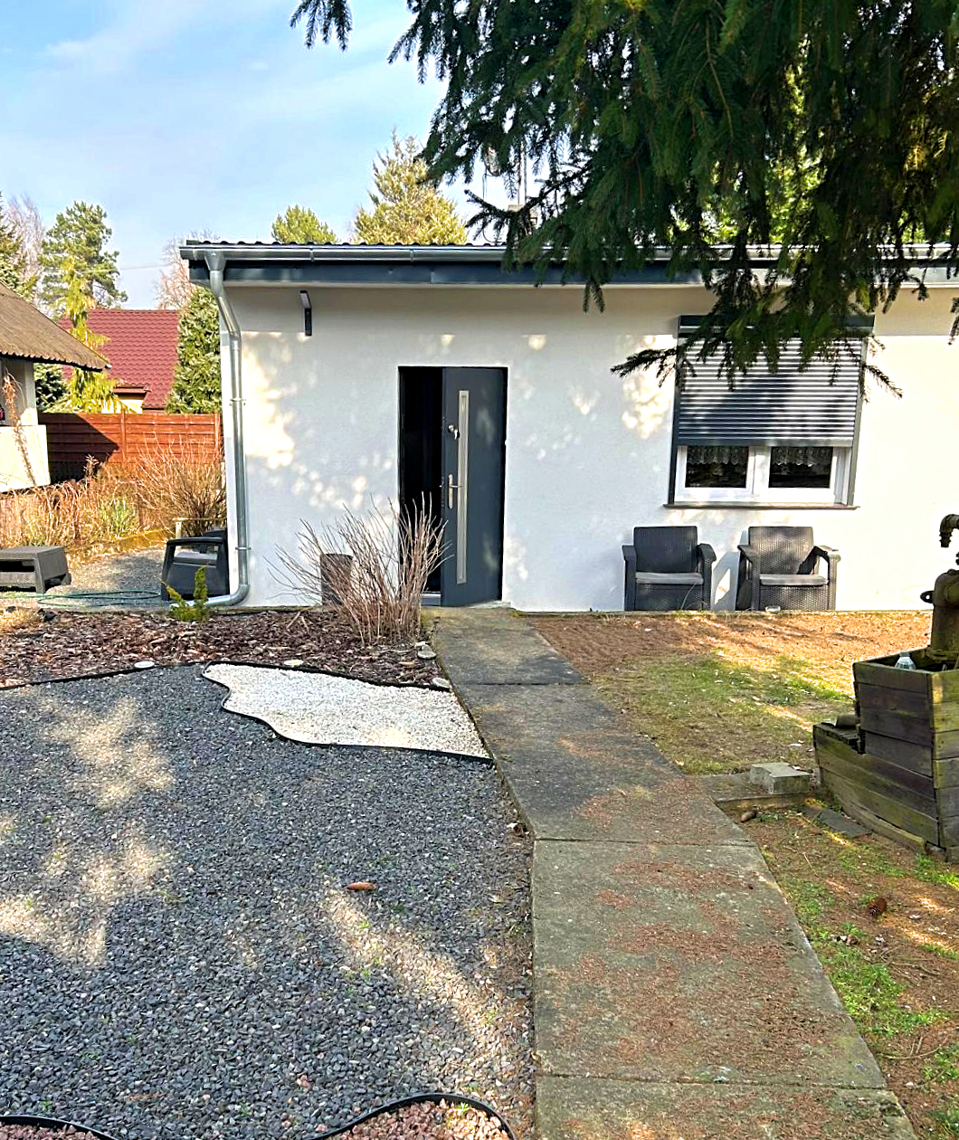 Domek znajduje się w zielonej, spokojnej okolicy jezior i lasów, w enklawie ogrodów działkowych z ograniczonym dostępem (brama na pilota dla właścicieli). W pobliżu: