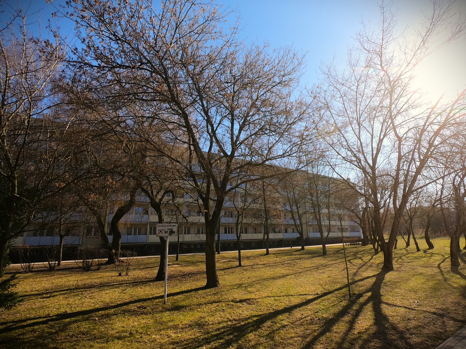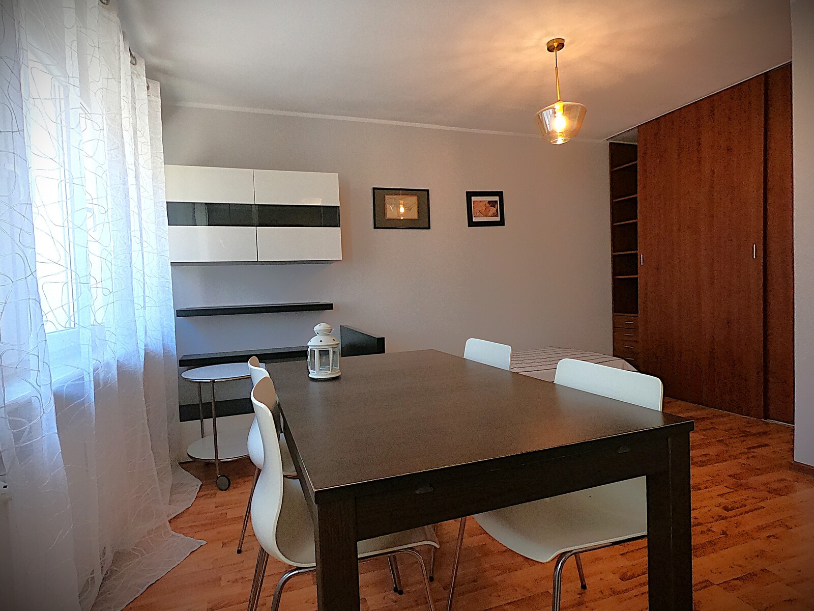 Mieszkanie znajduje się na parterze. Okna wyposażone w rolety zewnętrzne z widokiem na zielony, zagospodarowany obszar przed blokiem.