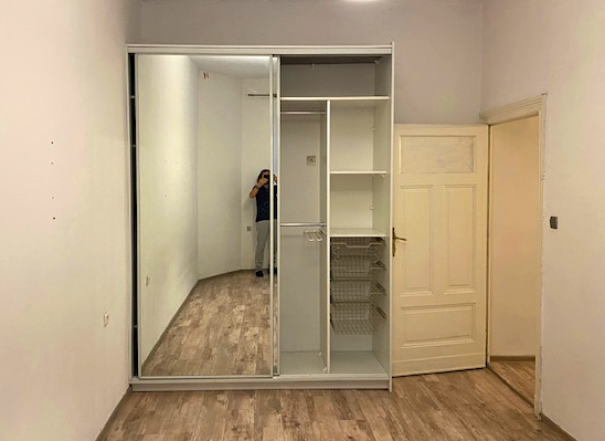 Lokal jest tylko częściowo umeblowany (kuchnia ze sprzętami, łazienka oraz duża szafa garderobiana).